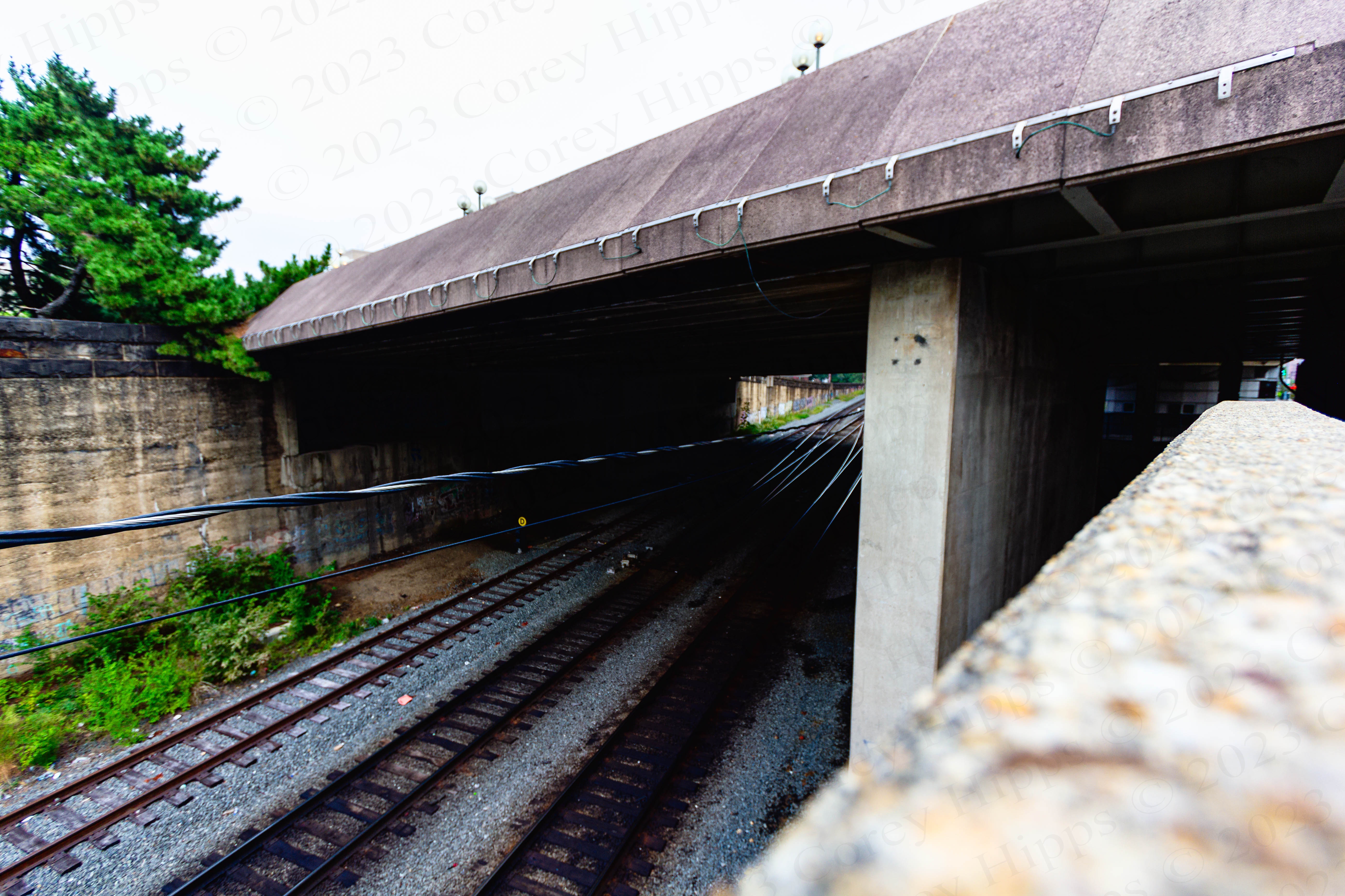 Based on the discoloration on the tracks some kind of diesel train moves along these.